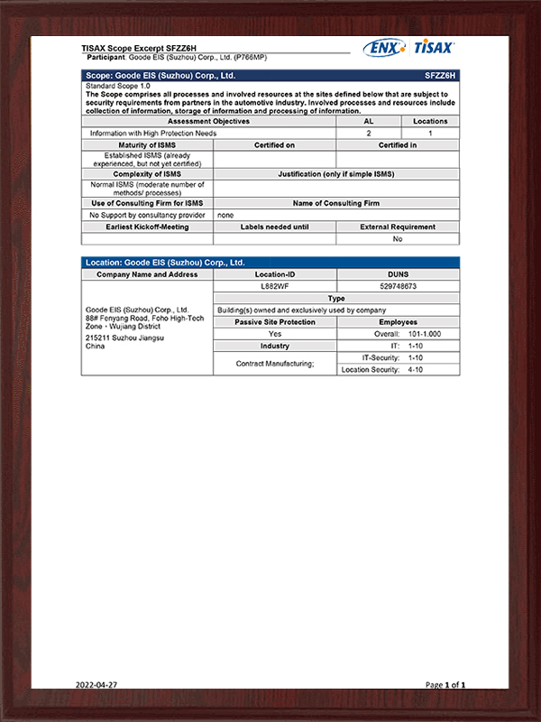 Sijil TISAX SFZZ6H